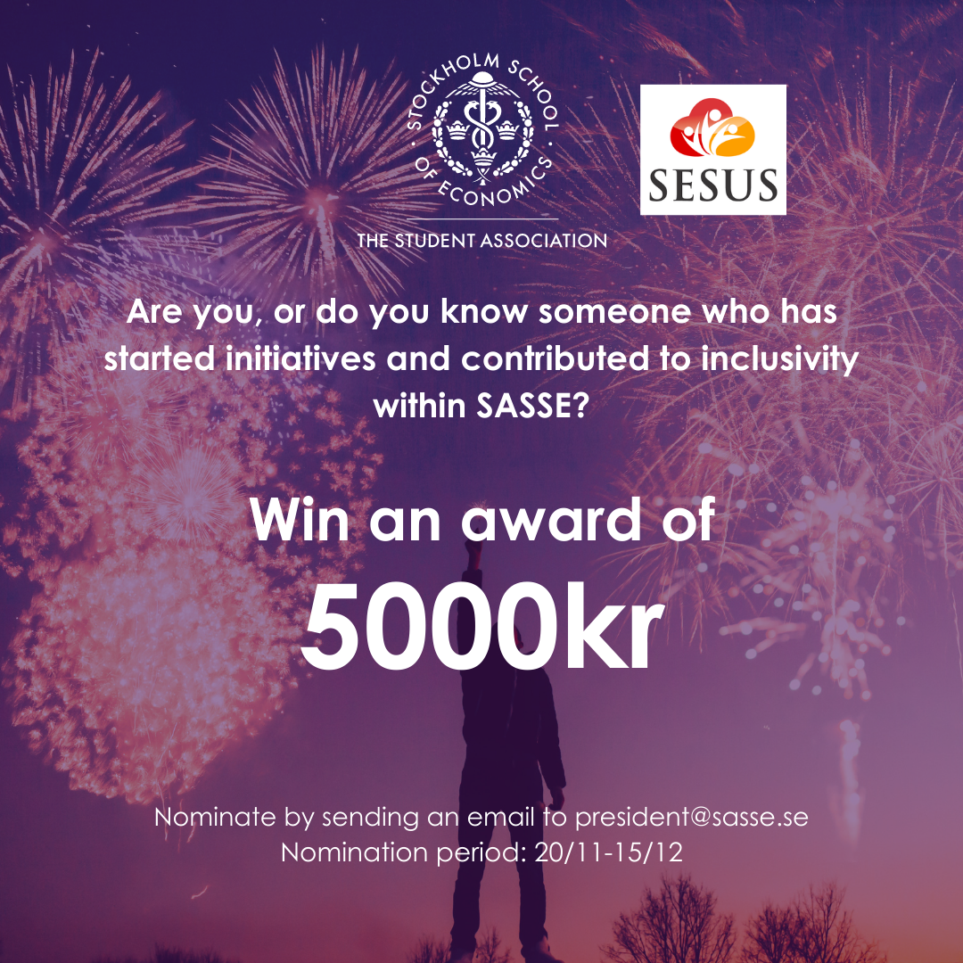 Together with SESUS, the SASSE Board has decided to hand out 5 000 SEK to two individuals – one who has started initiatives and one who has contributed to inclusivity within SASSE.