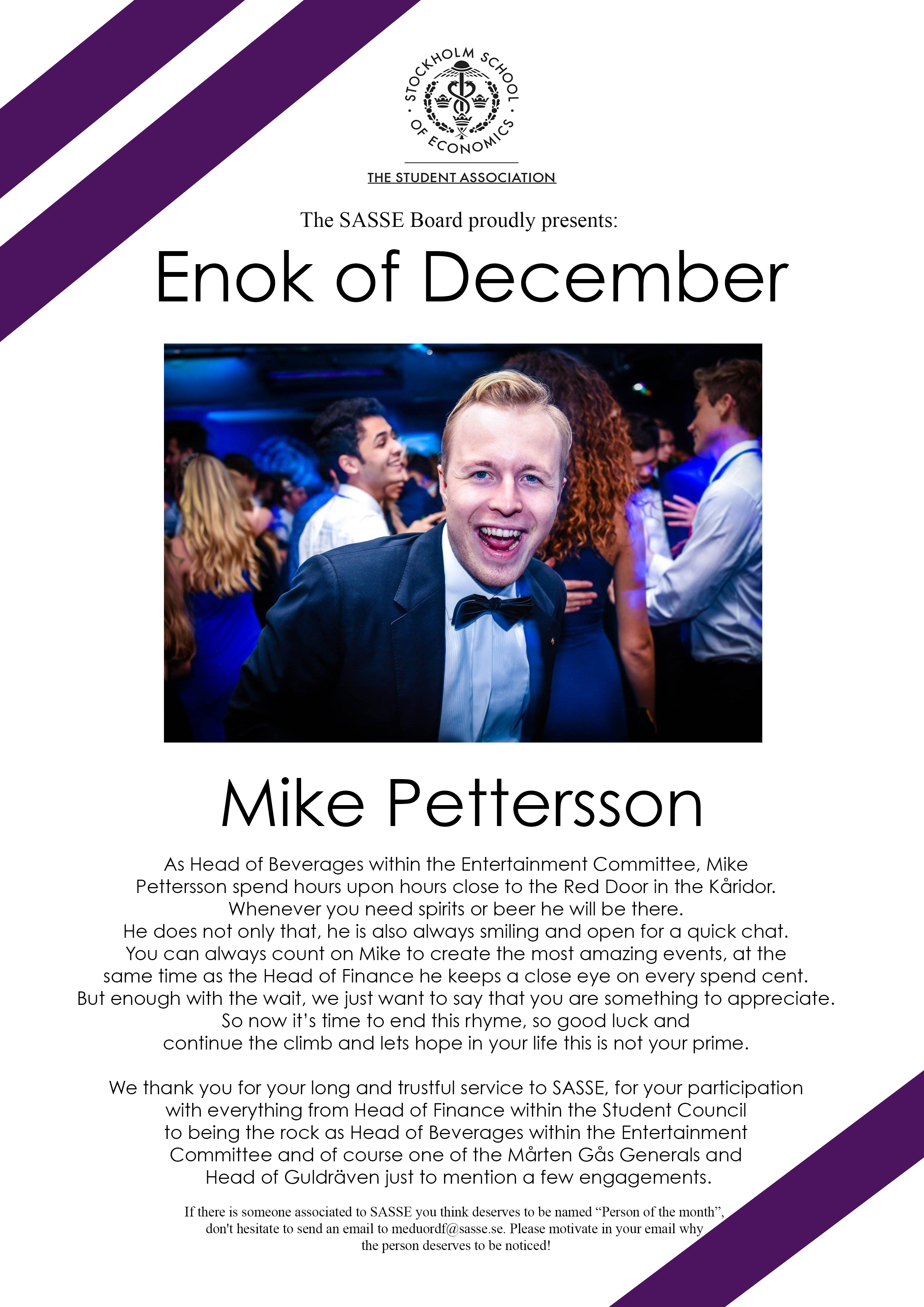 Mike Pettersson is Enok of the month! Congratulations, and thank you for your hard work!