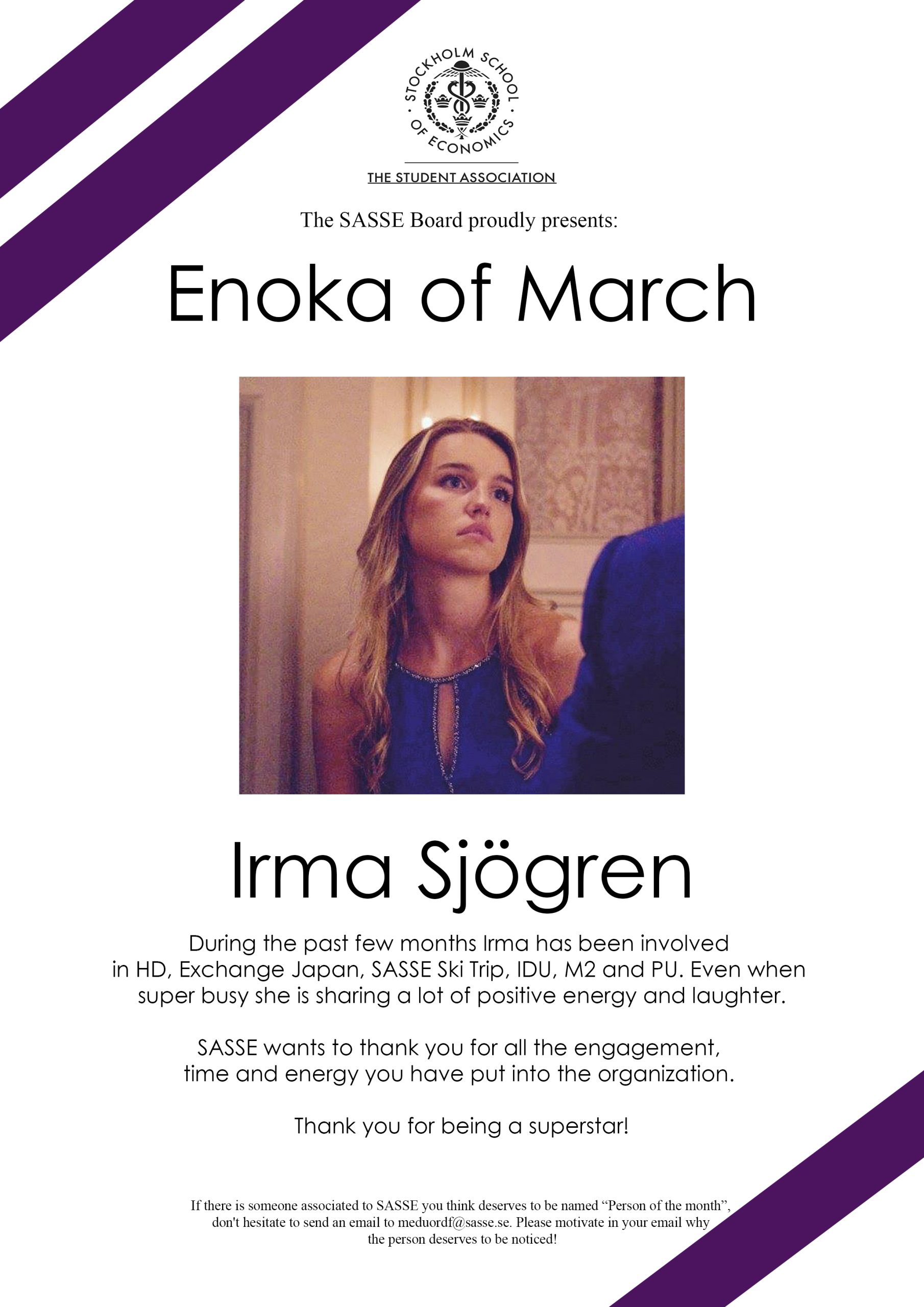Irma Sjögren is Enoka of the month! Congratulations, and thank you for your hard work!