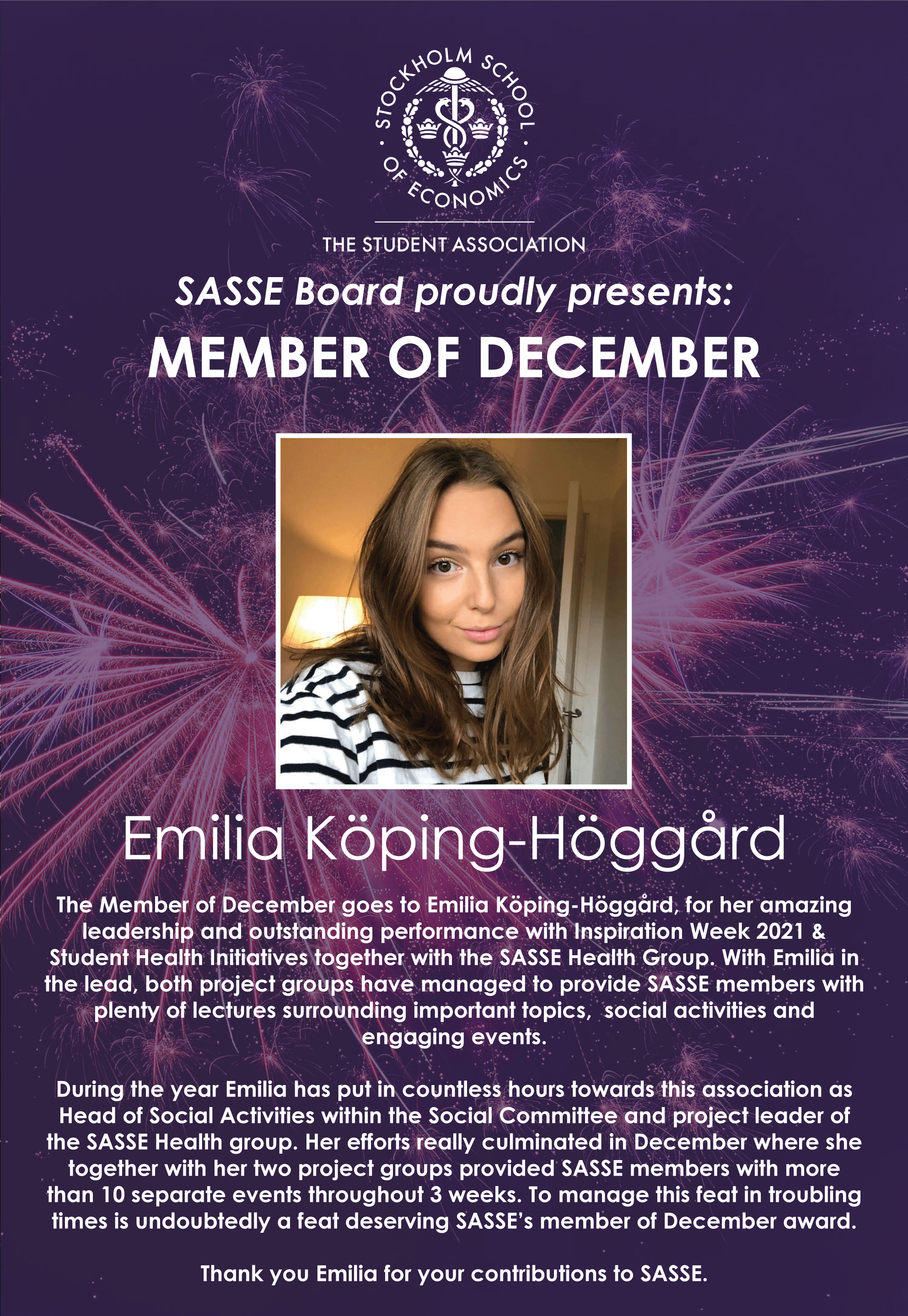 Congratulations Emilia Köping-Höggård for being Member of December!