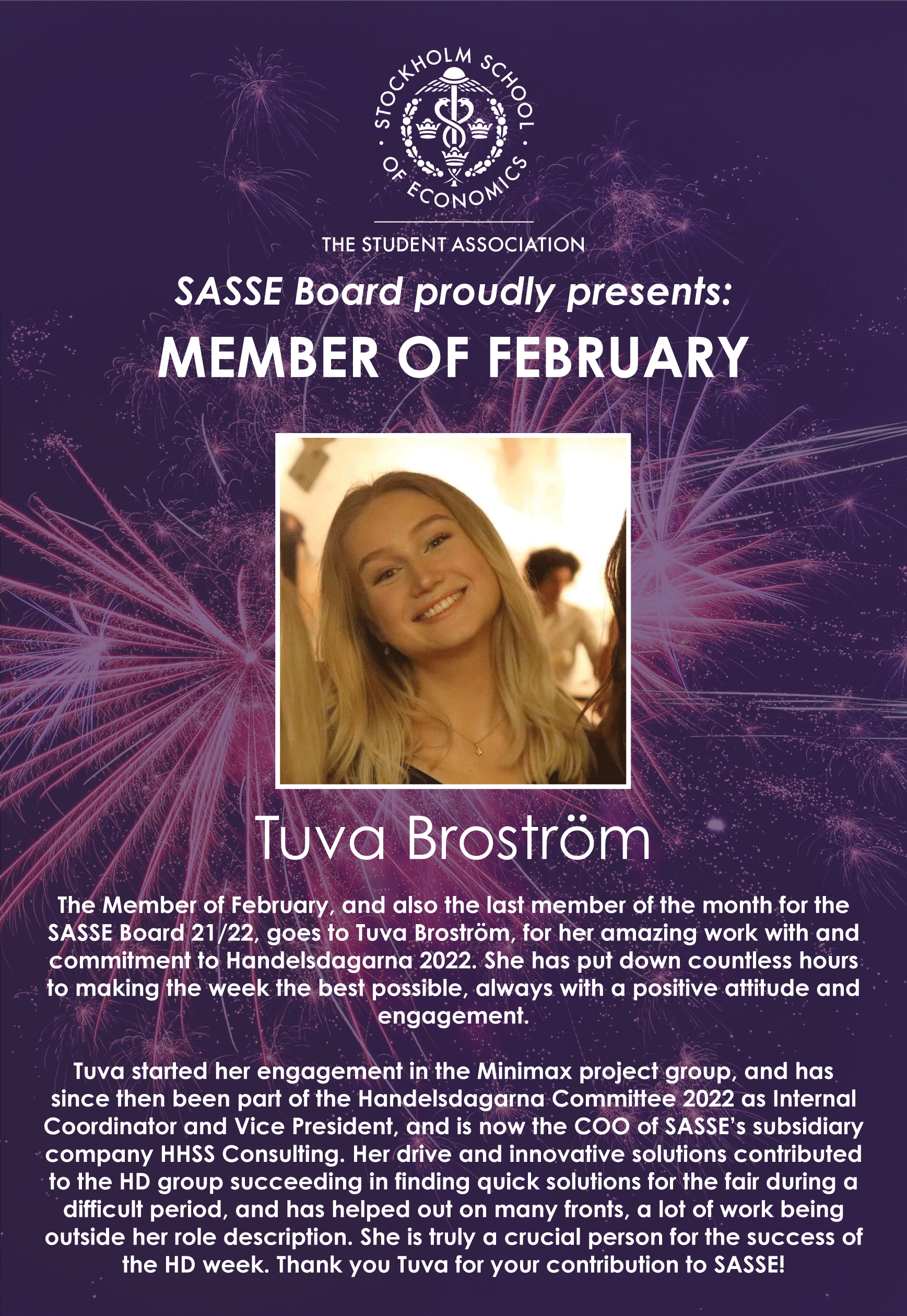 Congratulations Tuva Broström for being Member of February!
