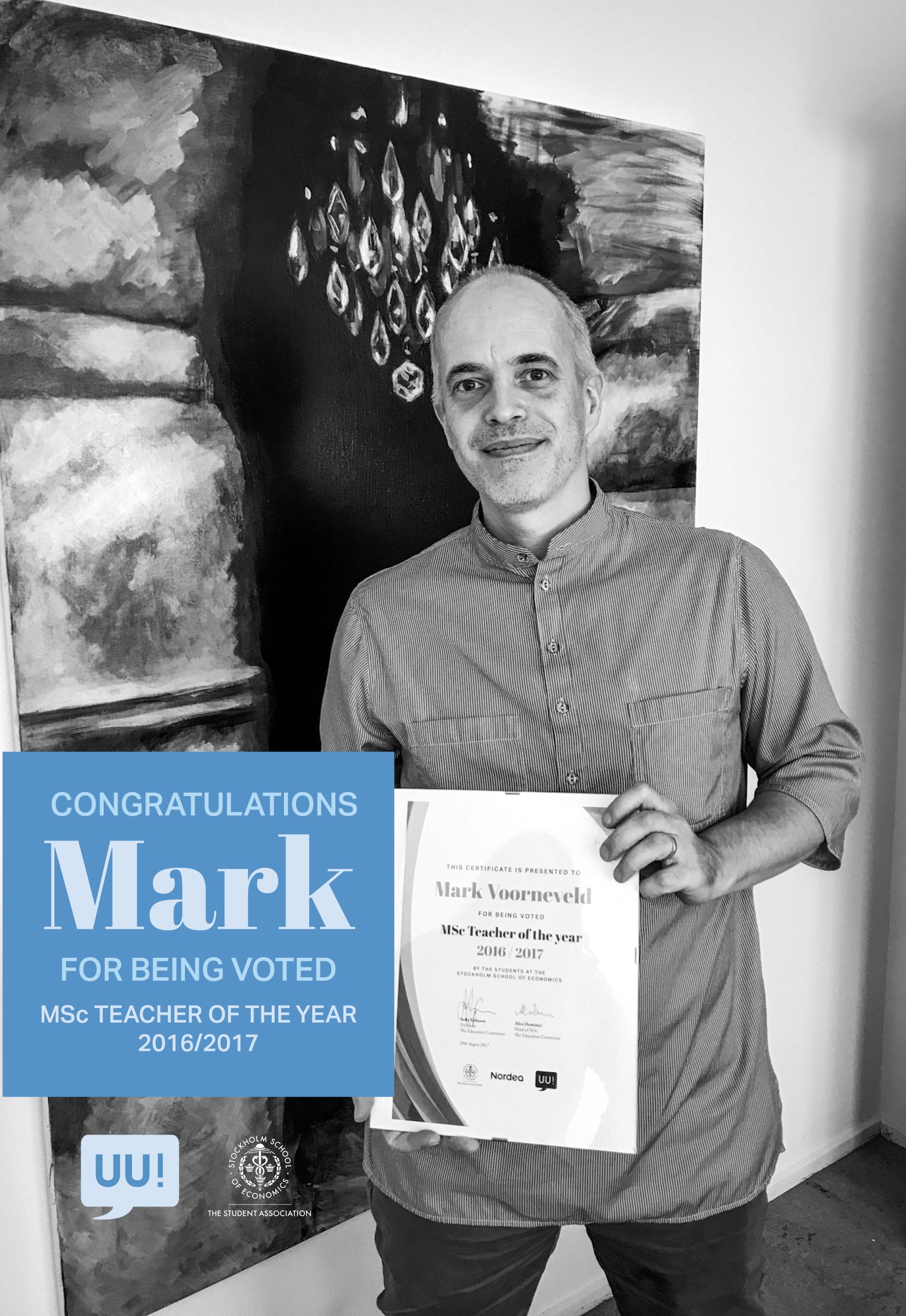 As the recipient of this award, Mark will receive 25000 SEK by the contribution of Nordea, as well as a certificate from The Education Committee to decorate his office.