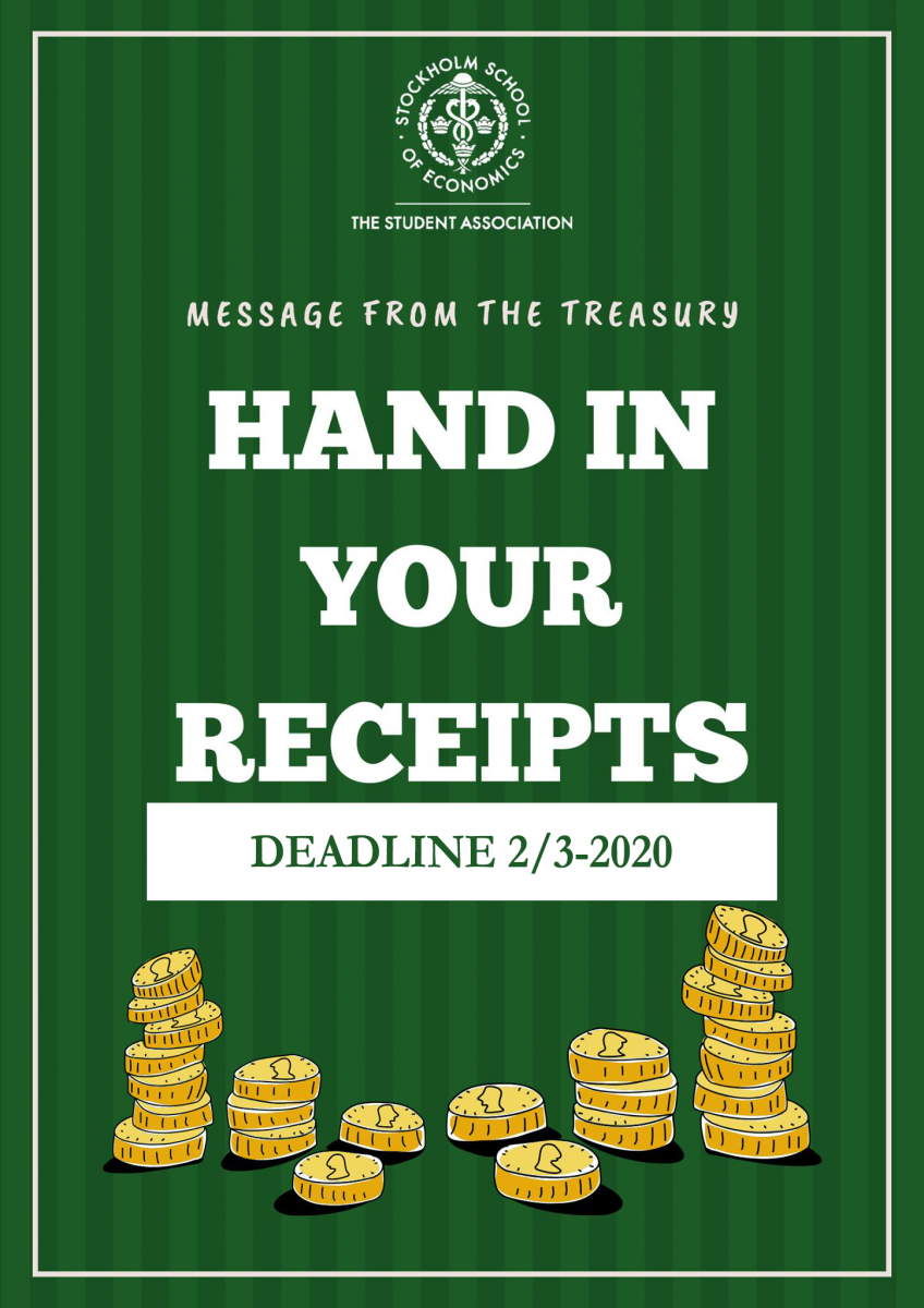 Time to hand in your receipts for period 1/11-2019 – 29/2-2020!